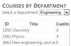 執行 Courses.aspx 頁面,然後選取相同的部門以查看新課程。