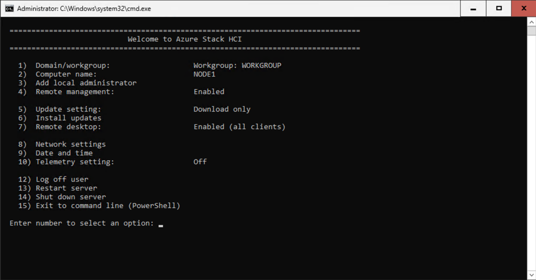 您可以在安裝之後,使用 SConfig 來設定 Azure Stack HCI OS。