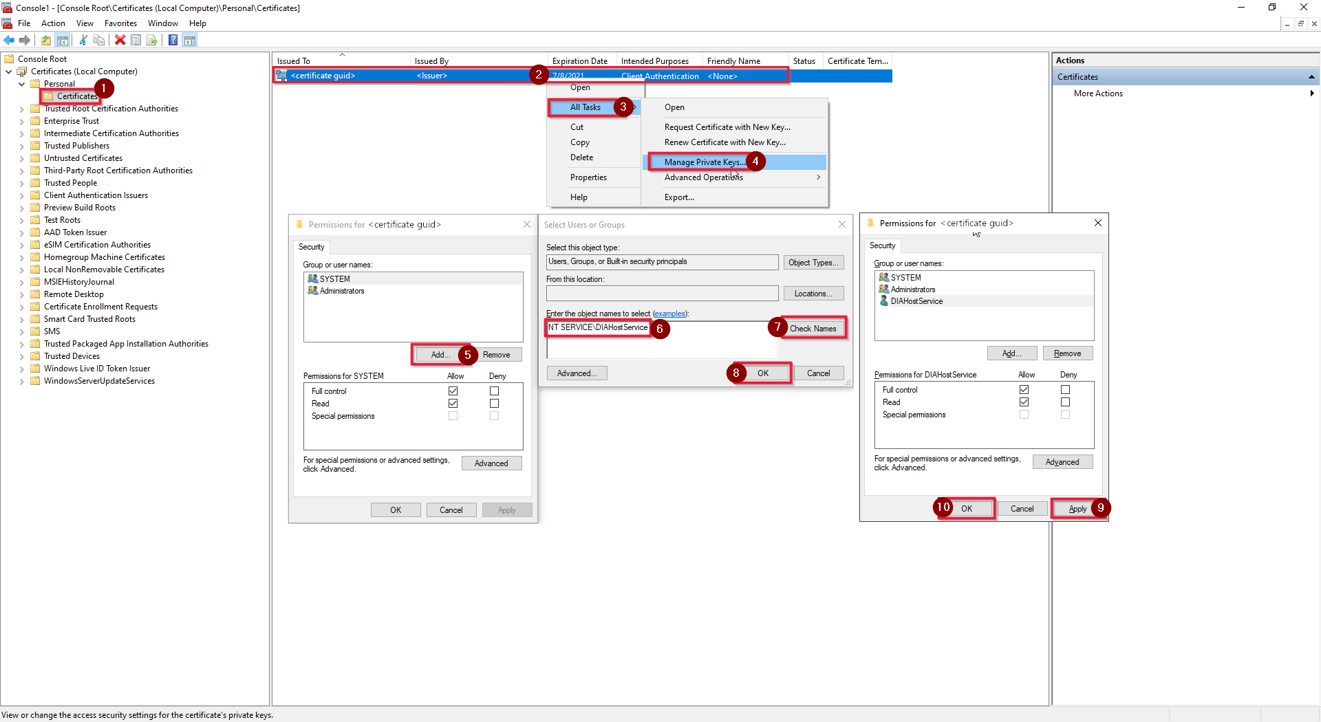 匯出需要驗證的憑證。 若要這樣做,請執行下列動作: