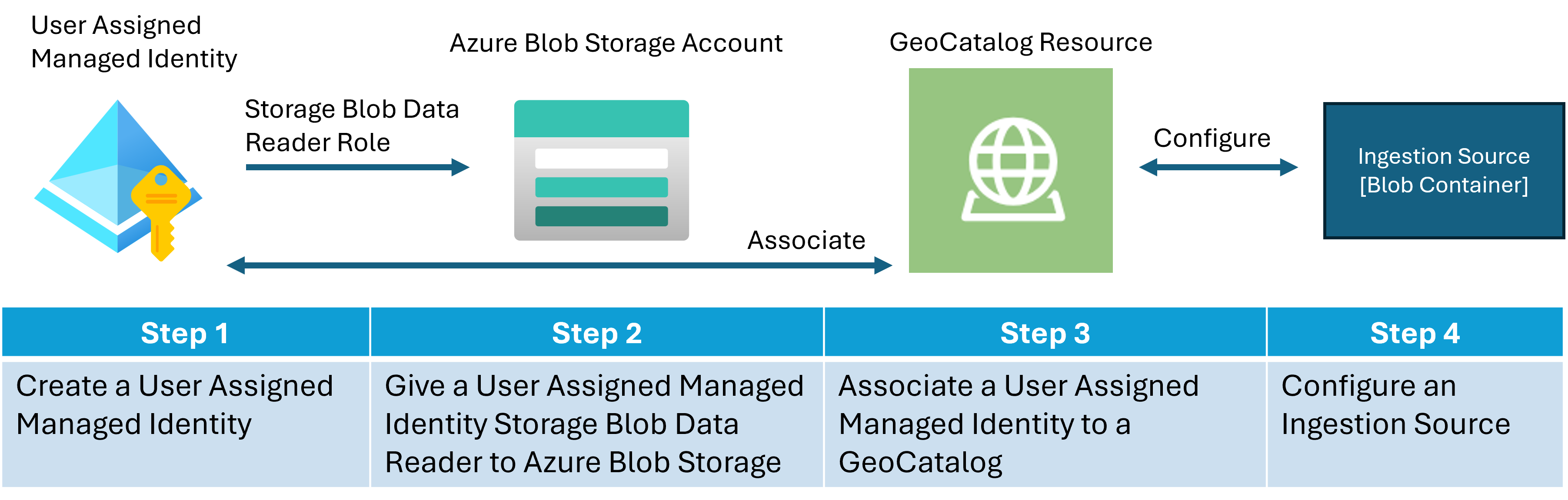 設定 GeoCatalog 資源以從外部擷取來源讀取數據時,需要這四個步驟。