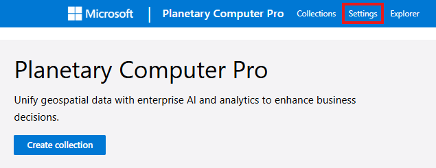 ![GeoCatalog 入口網站的螢幕快照,其中醒目提示 [設定] 索引卷標位置。](media/settings-link.png)