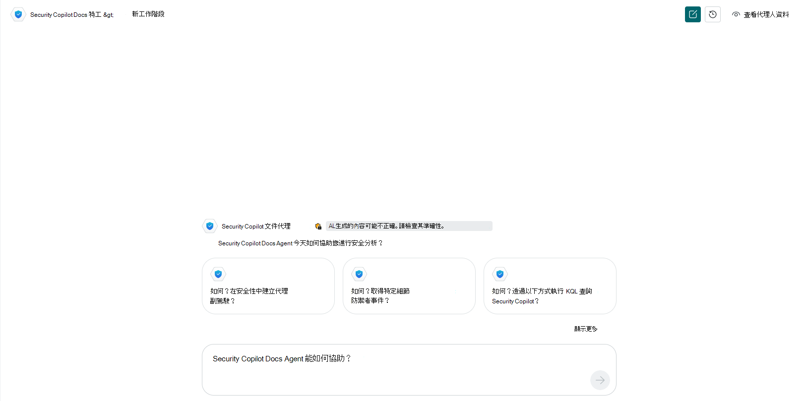 在 Microsoft Security Copilot 左側導覽窗格,前往代理。
