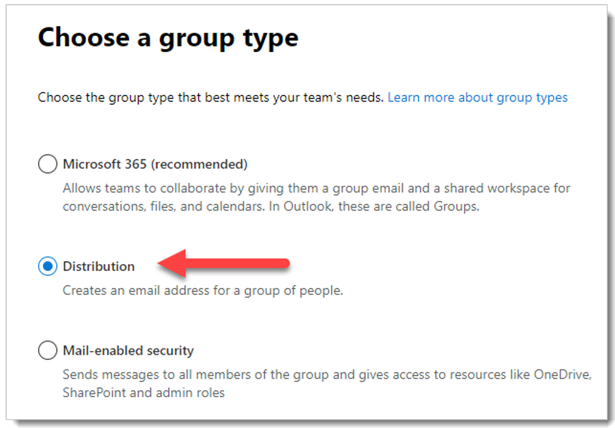 新增一個群組。在群組類型中,選擇 分布,然後點 選「下一頁」。