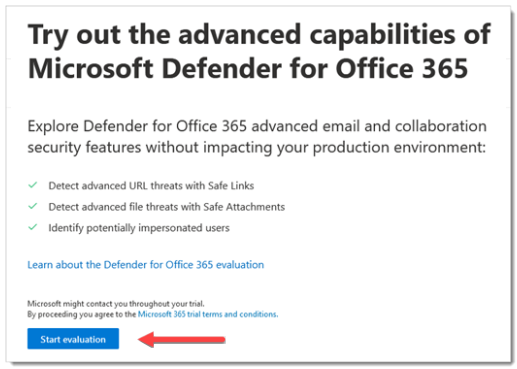 請依照此處的說明,從 Microsoft Defender 入口網站啟動您的 Microsoft Defender for Office 365 評估。