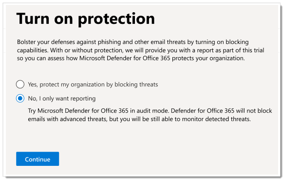 在 「開啟保護 」對話框中,選擇 「否,我只想要報告」,然後點選 「繼續」。