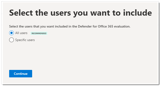 在「 選擇你想包含的使用者 」對話框中,選擇 「所有使用者」,然後點選 「繼續」。
