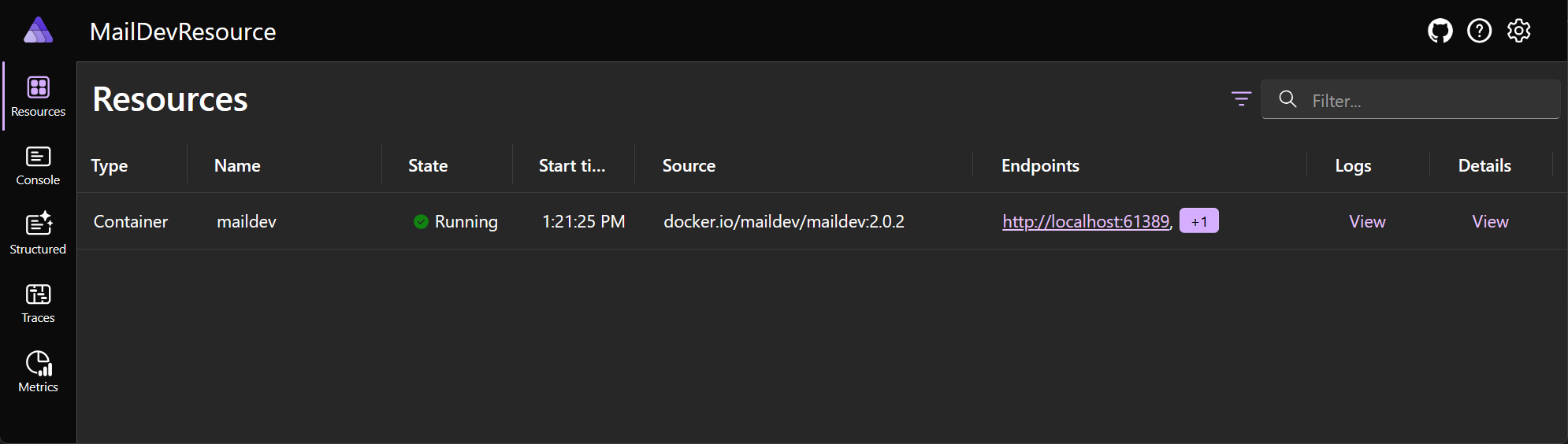 dotnet run --project MailDevResource.AppHost/MailDevResource.AppHost.csproj