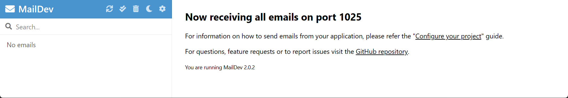 // for each resource type. MailDev exposes an SMTP endpoint and a HTTP