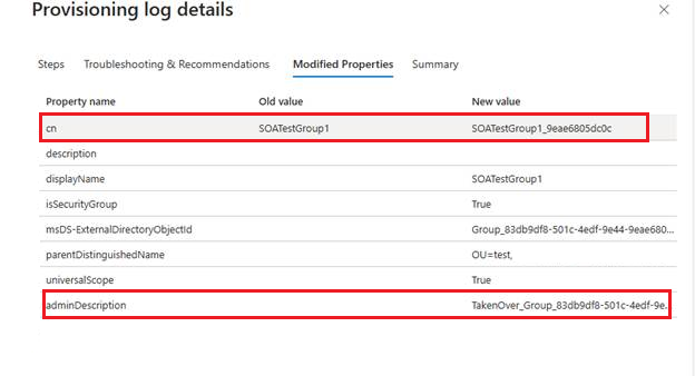 如果您在將 SOA 轉換成雲端之後嘗試編輯 AD DS 中的群組屬性,Cloud Sync 會在布建期間略過物件。