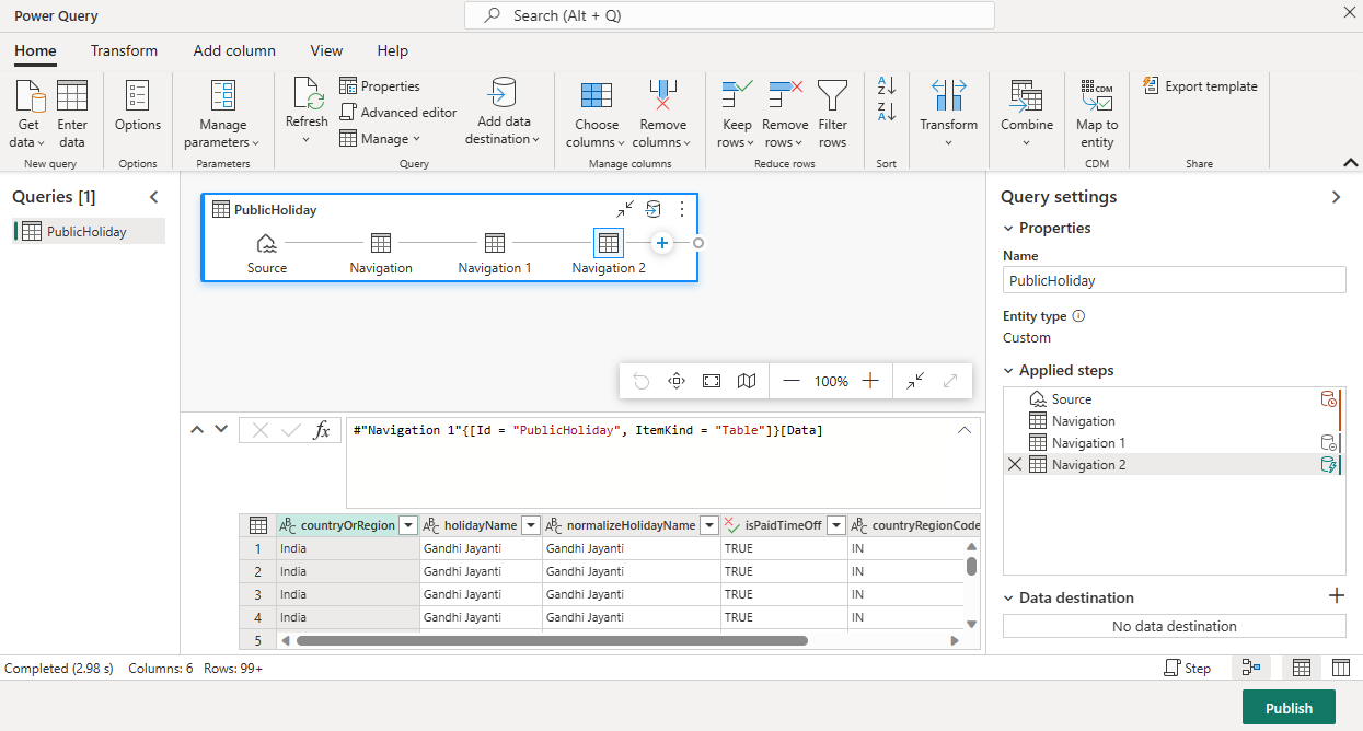 建立名為 BelgiumPublicHolidays 的新資料表,然後選取 [下一步]。
