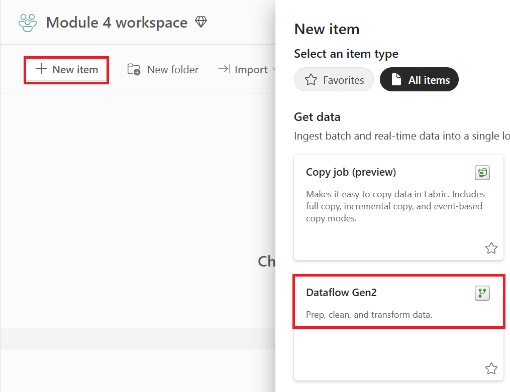 在工作區中建立新的 Dataflow Gen2。