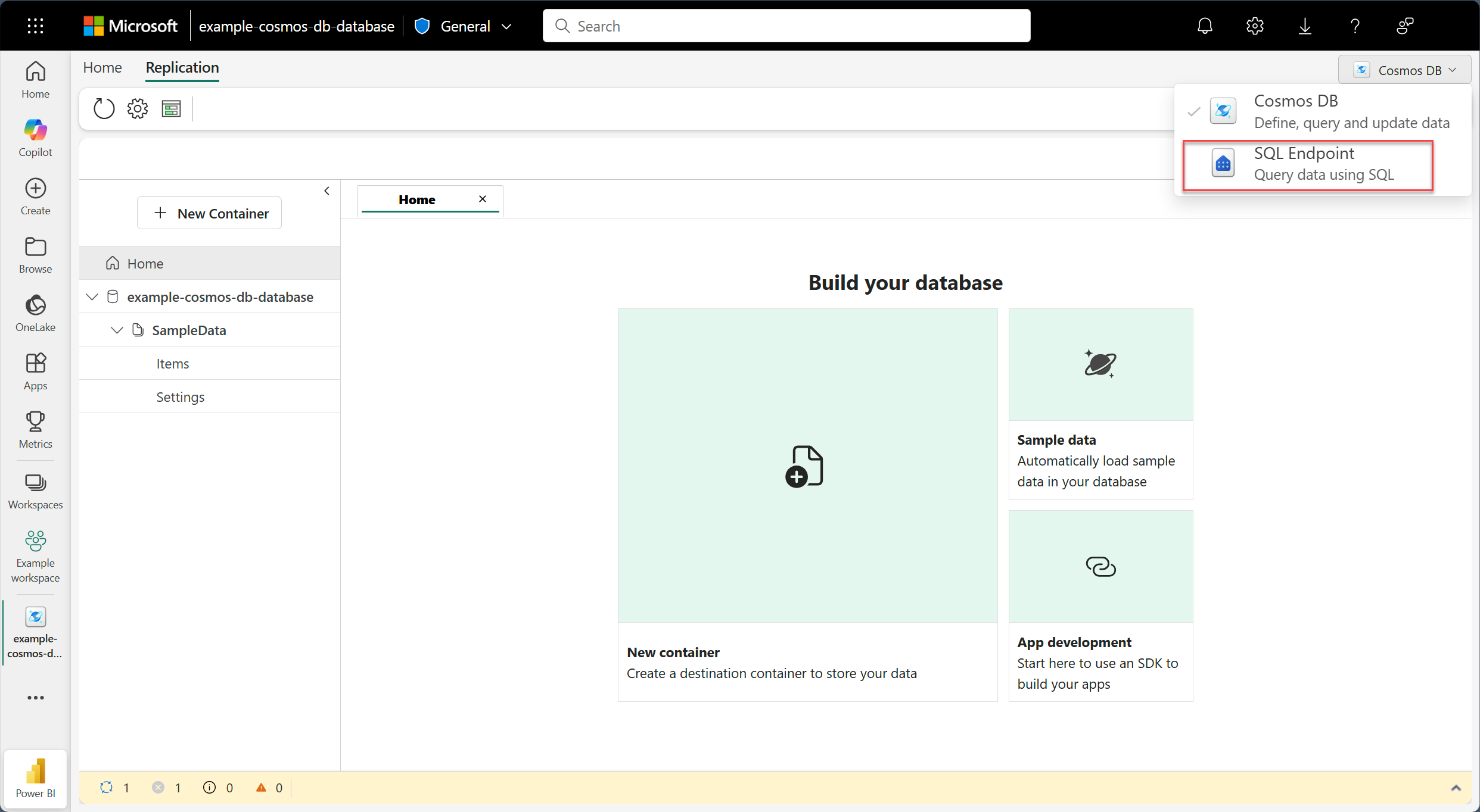 - 至少有另一個 SQL 分析端點,用於 Fabric 資料庫項目中的第二個 Cosmos DB。