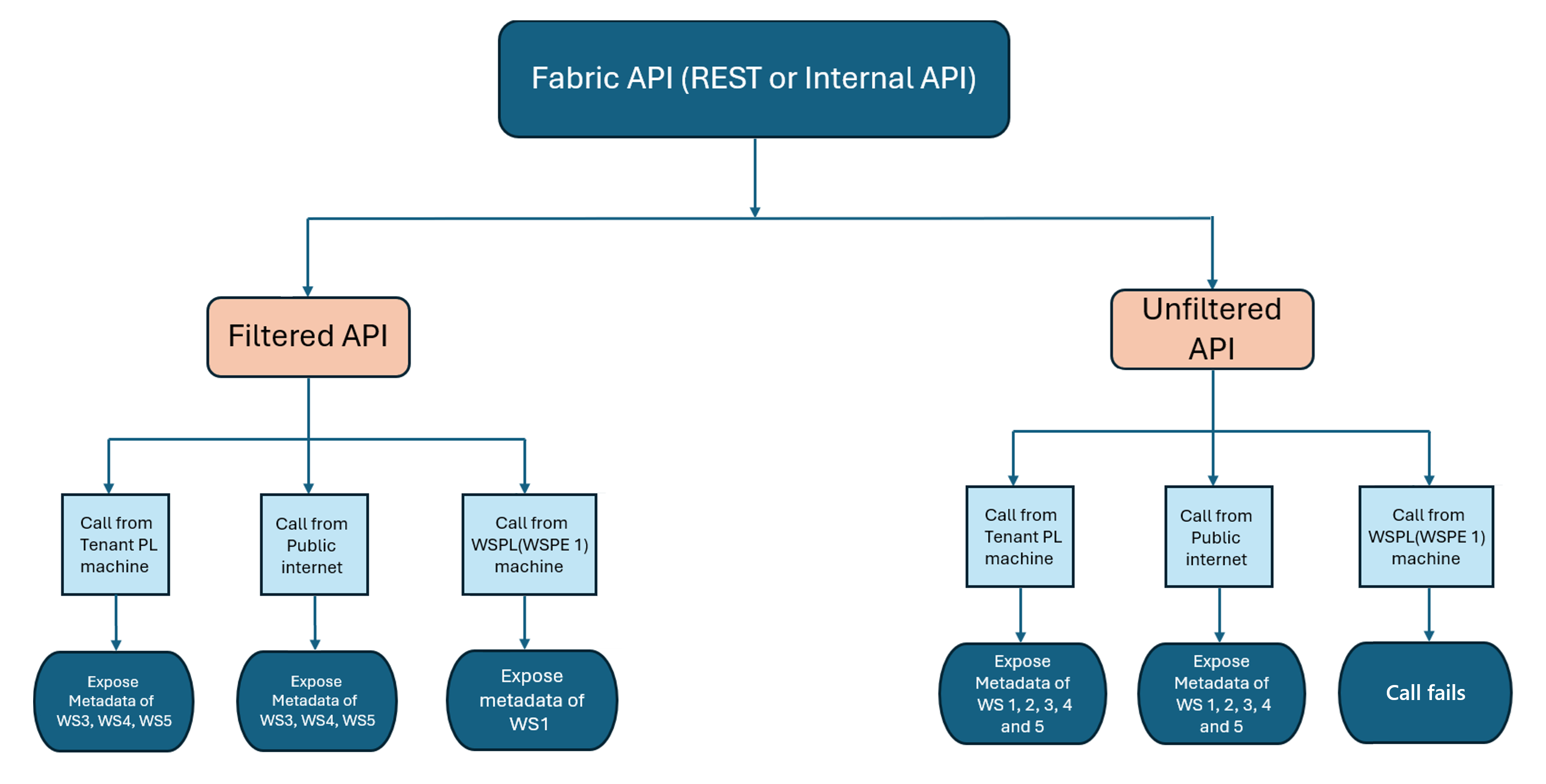 多工作區 API 不一定會公開為獨立 REST 端點。 在許多情況下,這些 API 是以間接方式被調用的。 例如,它們可能作為更廣泛的 REST 呼叫、背景程序或入口網站操作(例如在 Fabric UI 載入頁面)中被呼叫。 無論觸發方式如何,它們都被精心設計,確保只回傳使用者被授權存取的元資料。