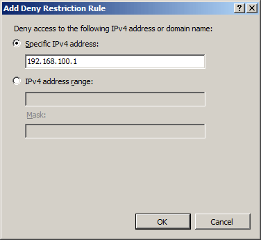 <add ipAddress="169.254.0.0" subnetMask="255.255.0.0" allowed="false" />