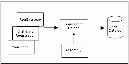 RegistrationHelper 會嘗試使用 RegistrationHelperTx 在交易內執行這些步驟,這是安裝 .NET 時所建立 COM+ 應用程式內的類別。 因此,如果註冊失敗,COM+ 目錄和登錄將會還原至其原始狀態。 目前,如果元件位於 GAC) 中,產生的類型程式庫仍會保留在磁片 (或 GAC 中。 如果註冊的元件參考其他也使用 COM+ 服務的元件,則相依性圖形中的所有元件都會經歷上述相同的步驟。