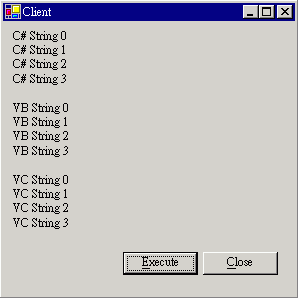 執行應用程式會建立下面這個對話方塊。按一下 Execute 按鈕時,便會將字串寫入表單上的標籤中: