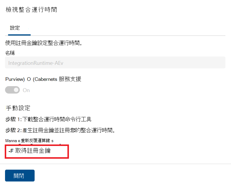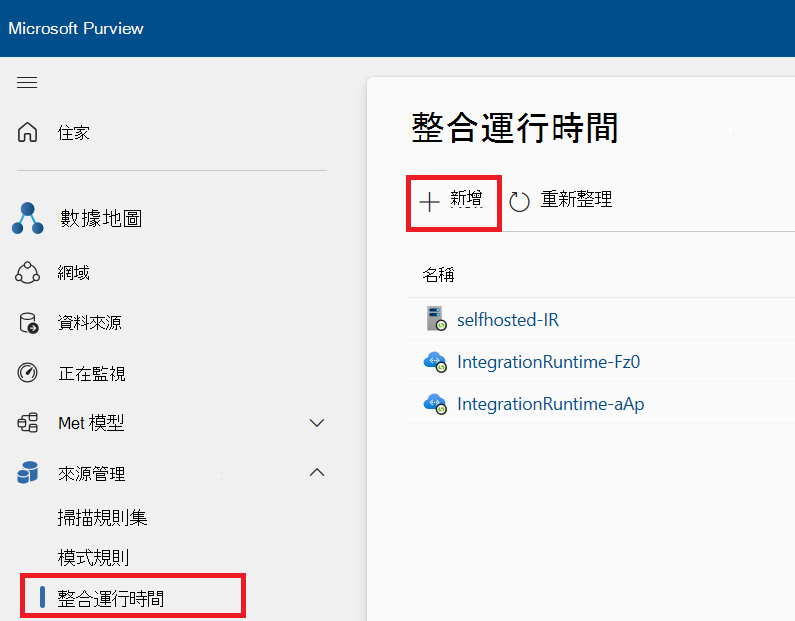 開啟 Microsoft Purview 資料對應中的 [整合執行階段] 視窗