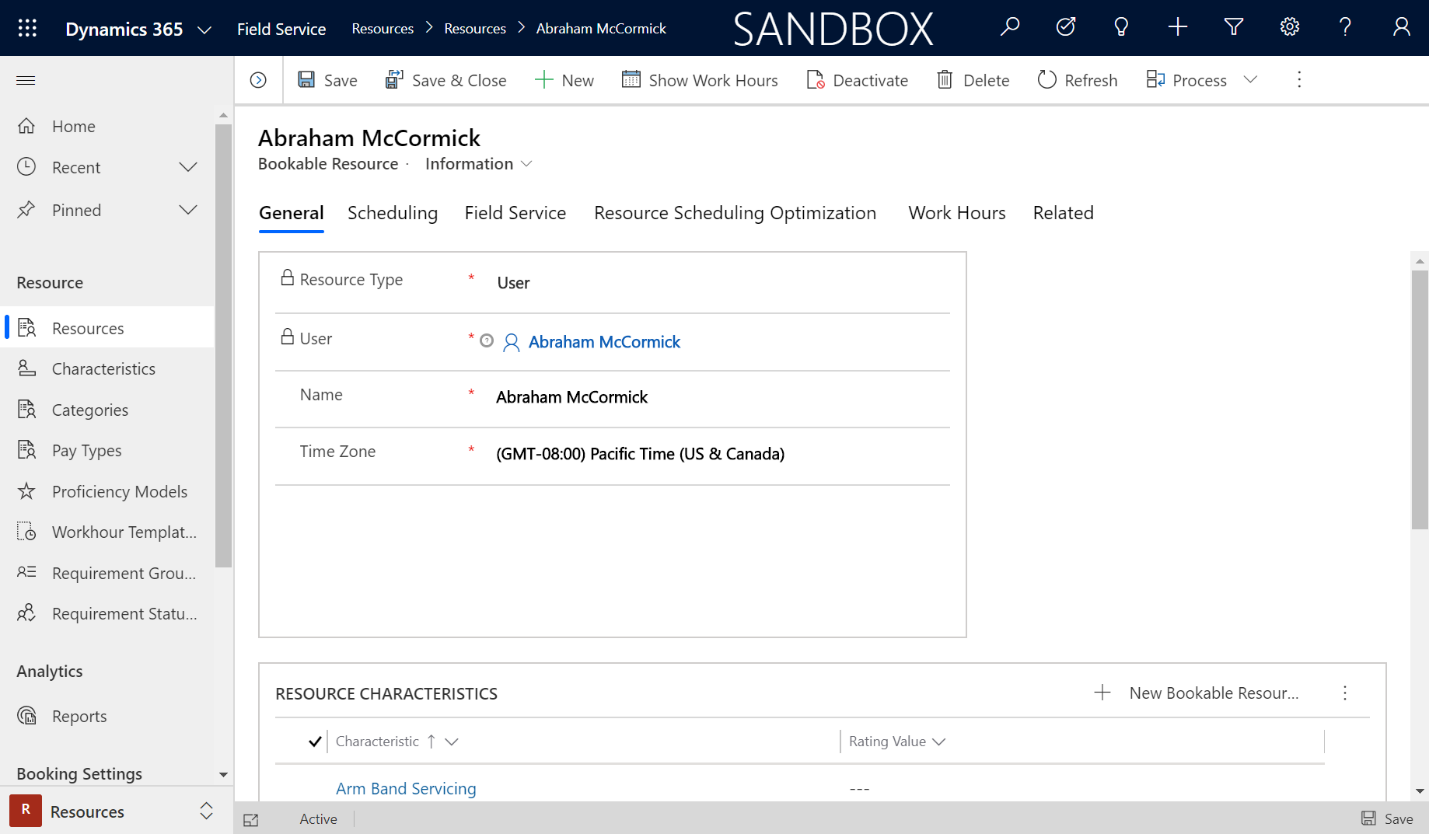- Define a bookable resource record for the onsite technician in Dynamics 365.