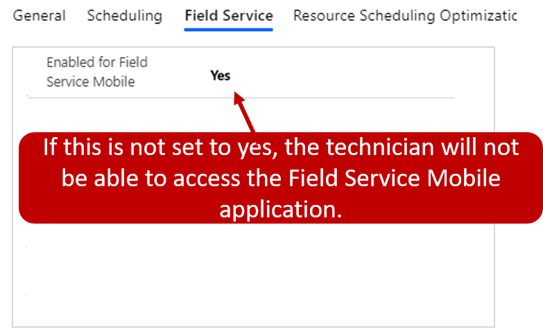 This outlined process will only ensure that the technician is able to access the Field Service Mobile application. Additional settings on the bookable resource record can impact how a technician works.
