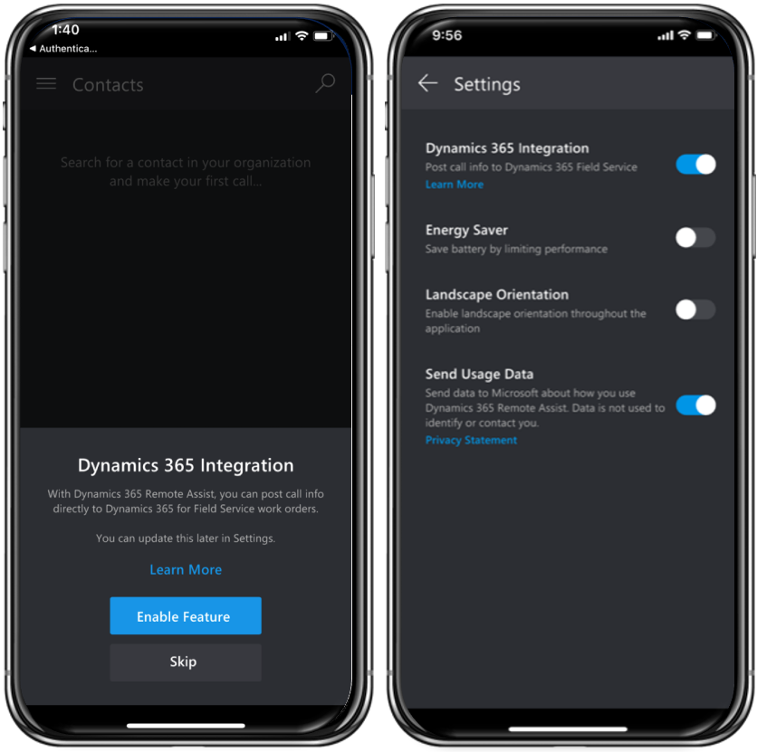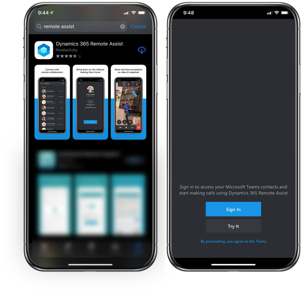 On Android and iOS devices, search for Dynamics 365 Remote Assist in the appropriate app store and then download the application. Make sure that you sign in to Remote Assist as the same user that you sign in to Field Service Mobile with.