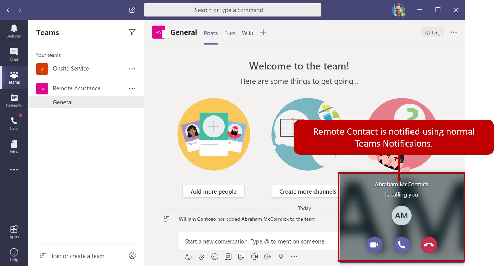 After the technician has initiated the call, the remote collaborator will receive the call on Microsoft Teams, as with any normal Teams call that they would receive.