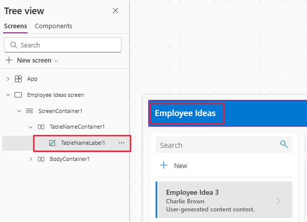 Select the header of the app and locate the name of the label.