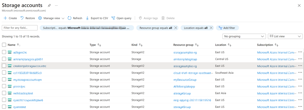 流覽至 Azure 入口網站 中的記憶體帳戶清單。