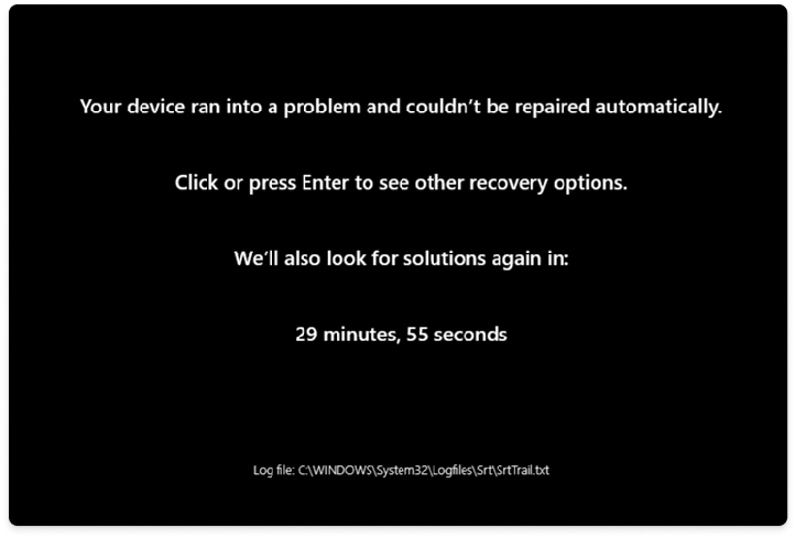 - 若解決方案失敗,裝置會重新啟動進入復原環境,並重複步驟 2 的流程