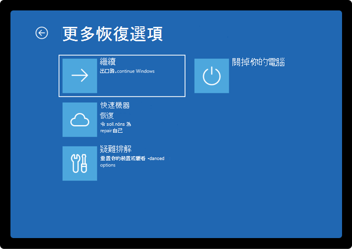 在 Windows RE 中,選擇繼續以正常開機 Windows