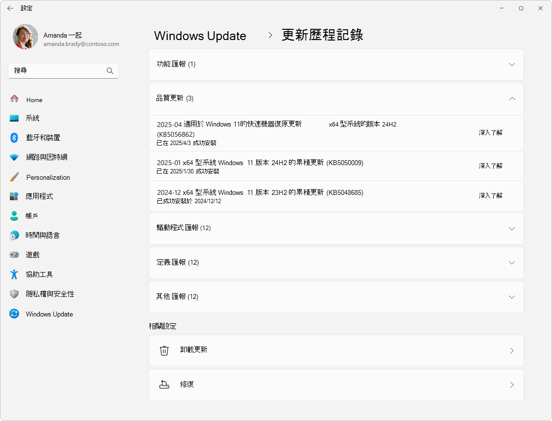 如果裝置有相關的修復措施,會出現>在品質更新區塊的 Windows UpdateUpdate>歷史紀錄中。